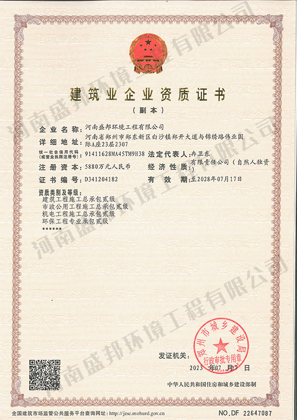 河南盛邦環(huán)境工程有限公司河南盛邦環(huán)境工程有限公司成立于 2018 年,注冊資金 5880 萬元, 是專注于環(huán)保產(chǎn)品研發(fā)、生產(chǎn)、銷售、施工、運營于一體的服務(wù)型企業(yè),more
